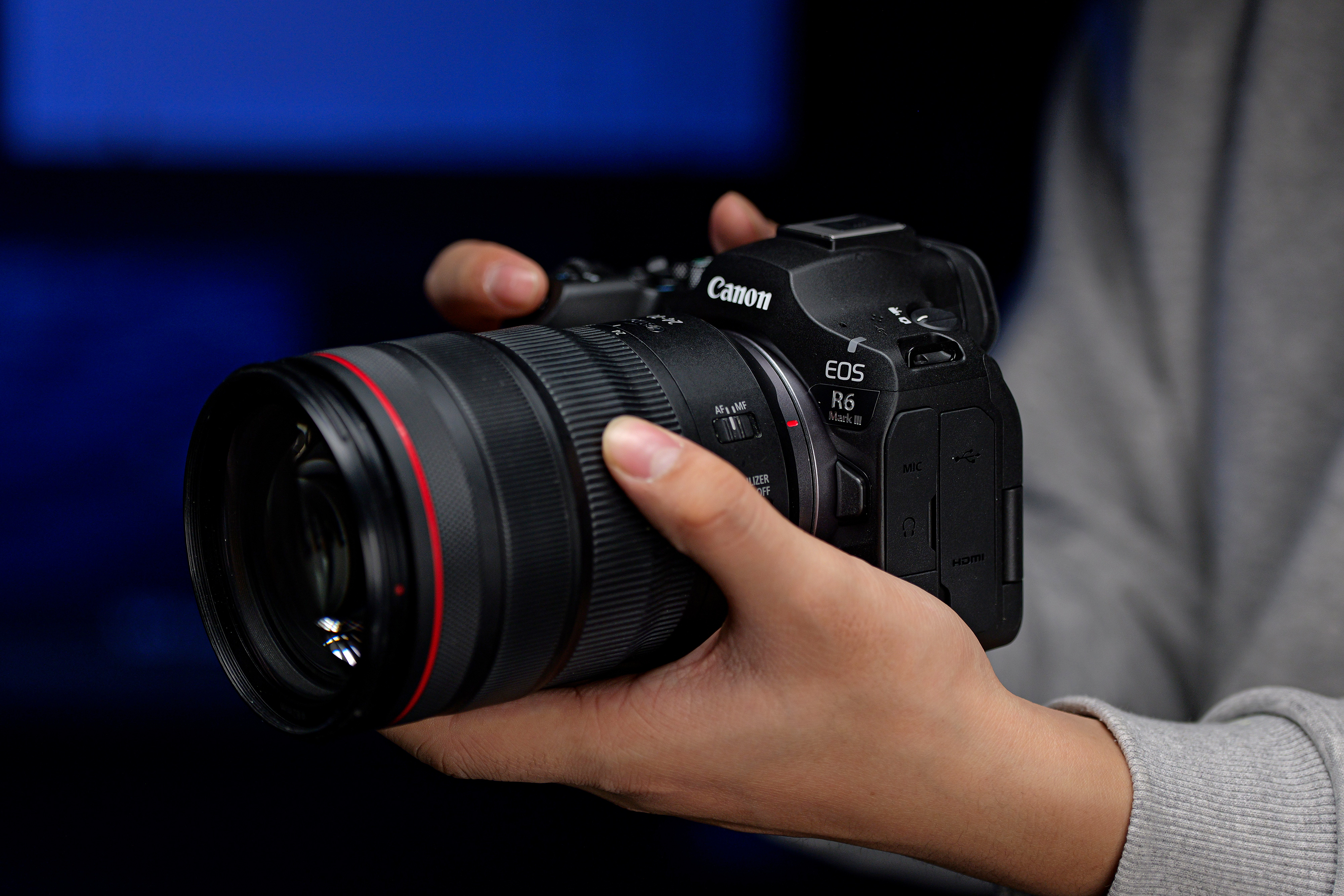 这次EOS R6 Mark III机身框架采用重量轻、散热好的镁合金材质制成,保证了机身的坚固性和散热性能,在长时间拍摄或者高强度视频录制时,良好的散热性能至关重要。机身表面覆盖了防滑材质,握持感扎实稳定。