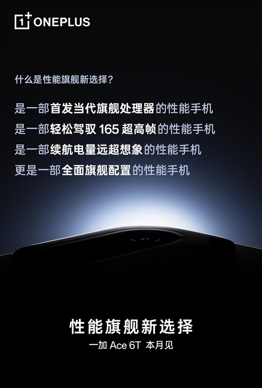 今天,一加中国区总裁李杰宣布,一加即将发布全新性能旗舰——一加Ace 6T。李杰表示,这款手机将是用户全新的性能旗舰选择,全球首发搭载高通的年度旗舰芯片——骁龙8 Gen5(第五代骁龙8)。这颗芯片的强劲性能和出色的游戏体验,仅是Ace 6T强大功能的一部分。该手机的目标是打造一款与众不同的性能手机,挑战行业常规,为用户带来前所未有的体验。