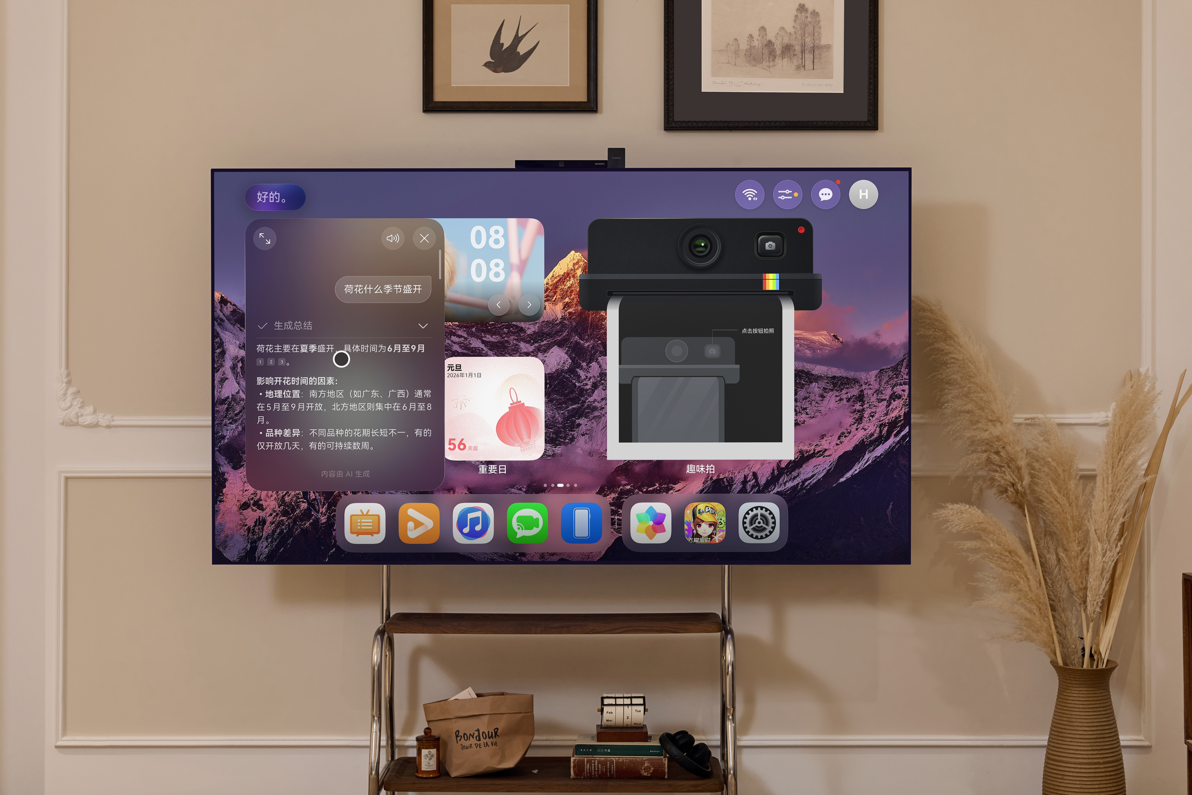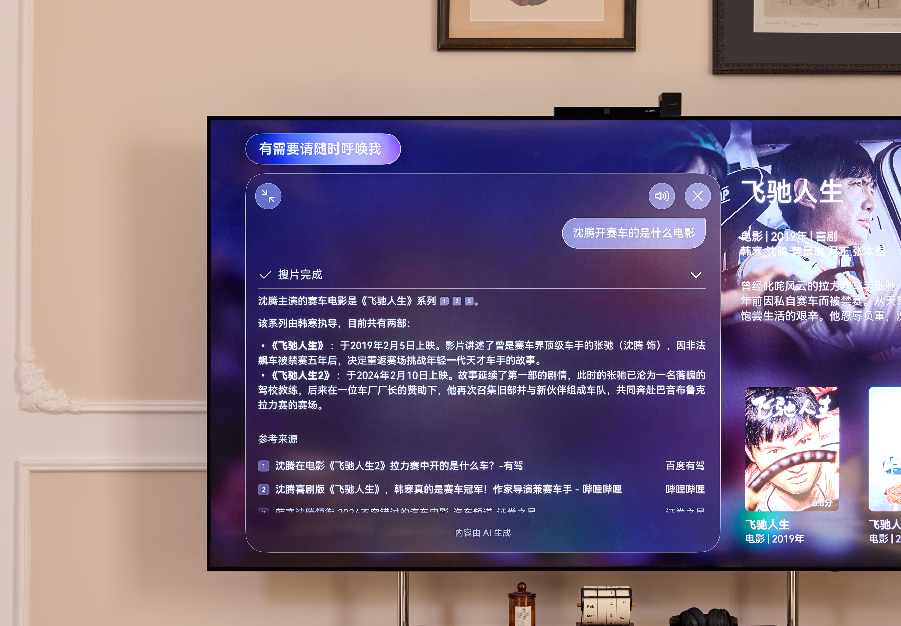 华为智慧屏MateTV还接入了盘古大模型,AI搜片、百度问答,轻松实现。