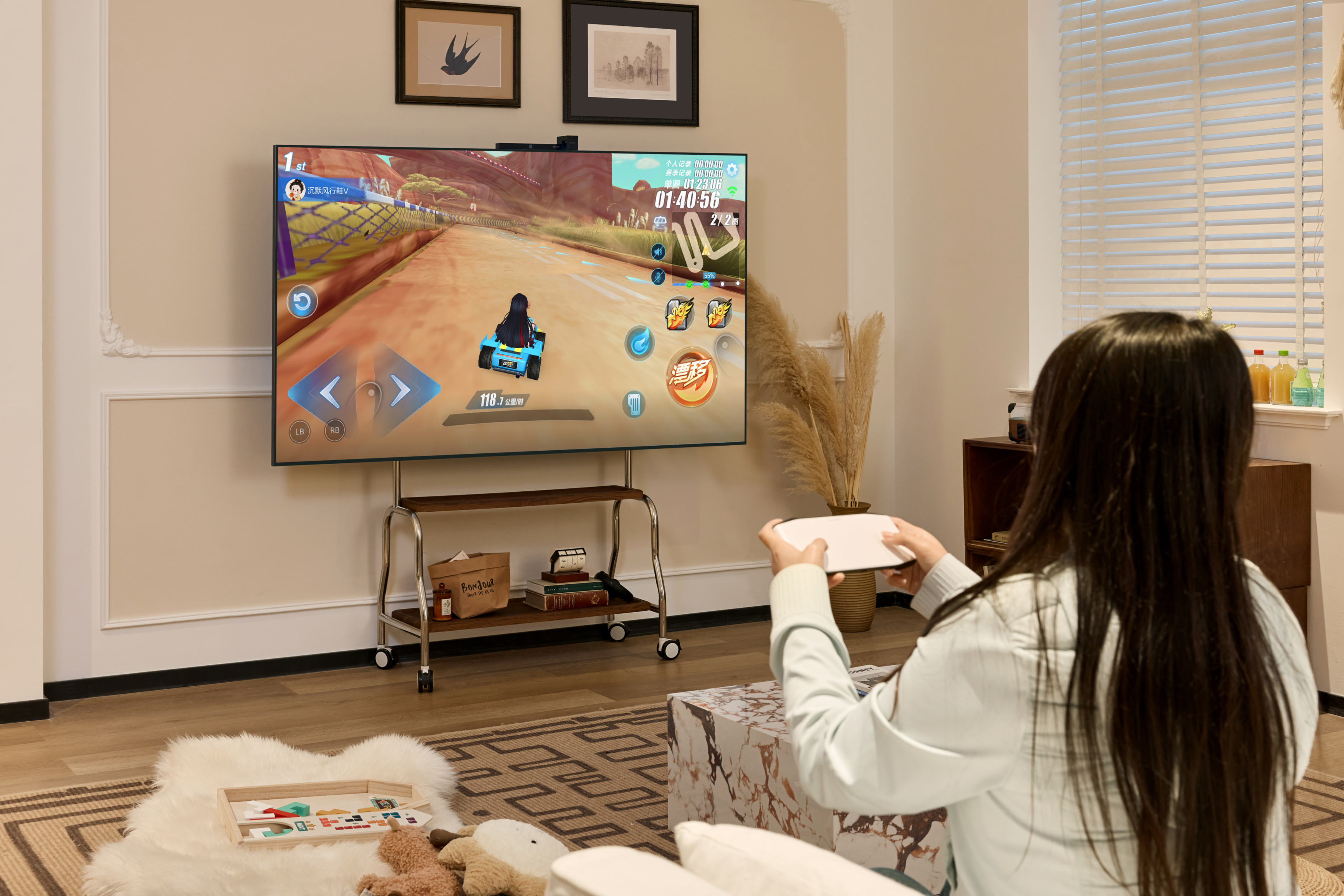 通过MateTV的灵犀悬浮触控板,用户可在巨幕上畅玩大型手机游戏。灵犀悬浮触控板革命性地实现了多指悬浮触控,如同将手机屏幕无限放大。8ms超低延迟让每次操作都“指哪打哪”,这不仅带来了前所未有的沉浸视觉与震感体验,更实现了从手机到大屏的“到家无缝切换”,让智慧屏真正成为家庭娱乐的核心。