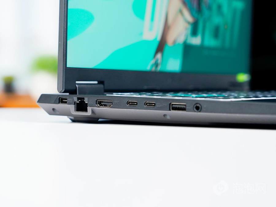华硕天选6 Pro酷睿版的接口配置也极为丰富,左侧包括了电源接口,一个雷电4(40Gbps)、一个USB-C 3.2 Gen 2、USB-A 3.2 Gen 2接口、HDMI 2.1 FRL、RJ45及3.5mm音频口,右侧则是两个USB-A 3.2 Gen 2接口,充分满足各种外接需求。