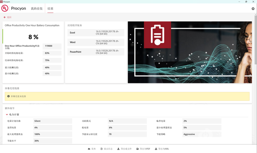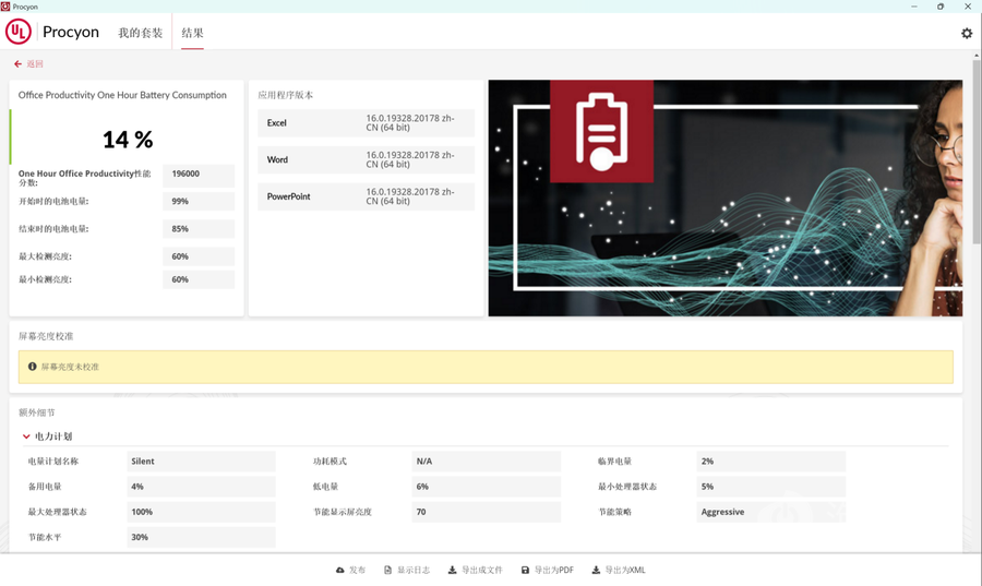 在负载更高更连续的UL Procyon一小时办公续航测试当中,天选6 Pro酷睿版在一小时之内消耗了8%的电量。这意味着在充满电的情况下,天选6 Pro酷睿版可以连续工作12小时以上,可以完全满足大家对于更长续航的需求。