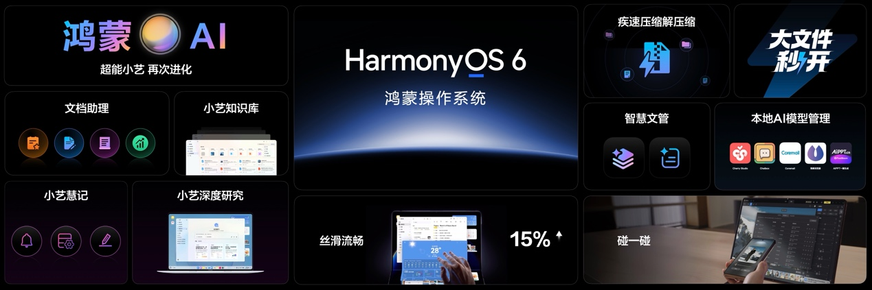 除了华为MatePad Edge外,在此次沟通会上也介绍了HarmonyOS 6给鸿蒙电脑带来的新特性:焕新小艺再进化,具备更强的分析和研究能力;互联更无感,更多应用支持碰一碰功能扩展鸿蒙电脑使用场景;整机体验更流畅,性能最高提升达15%;在AI的深度加持下,进一步打通鸿蒙电脑、鸿蒙生态的智能、互联体验。未来鸿蒙电脑还将围绕个人办公的核心需求,带来更多创新体验。