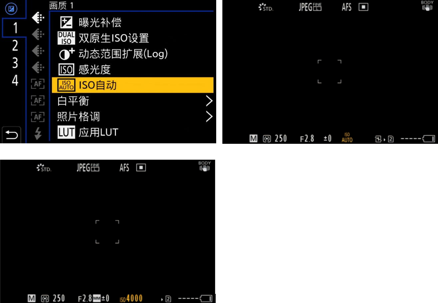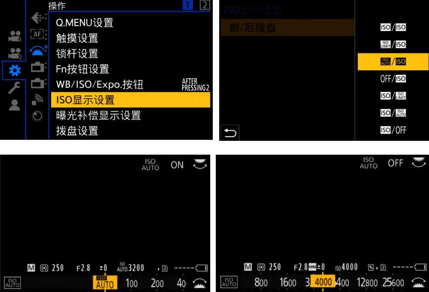 ISO自动功能可在自定义菜单的[ISO显示设置]菜单中进行设置