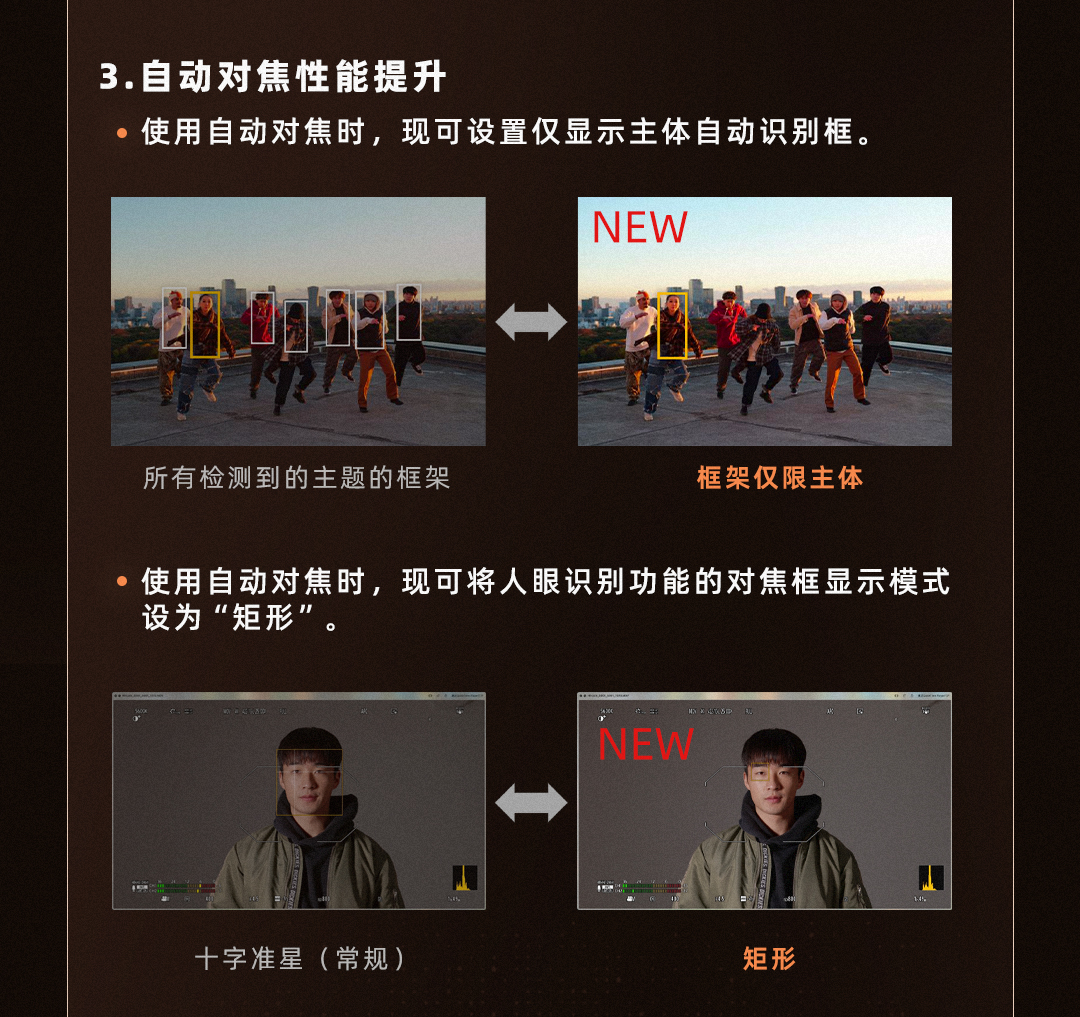 ·使用自动对焦时,现可设置仅显示主体自动识别框。