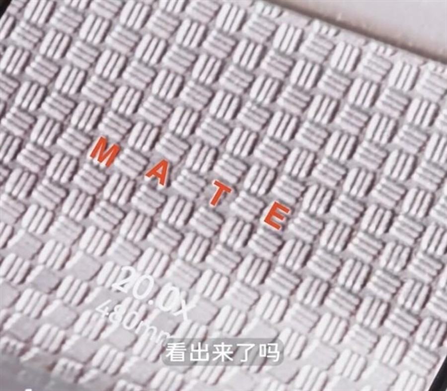 除了经典的设计元素,华为还在Mate 80系列的金属机身上加入了创新工艺,采用了光绘微纹工艺,巧妙地将Mate字样微缩至机身背部。通过长焦镜头放大20倍后,可以清晰地看到,细密的纹路中竟然隐藏着“MATE”四个字母,呈现出一种独特的视觉效果和艺术感。