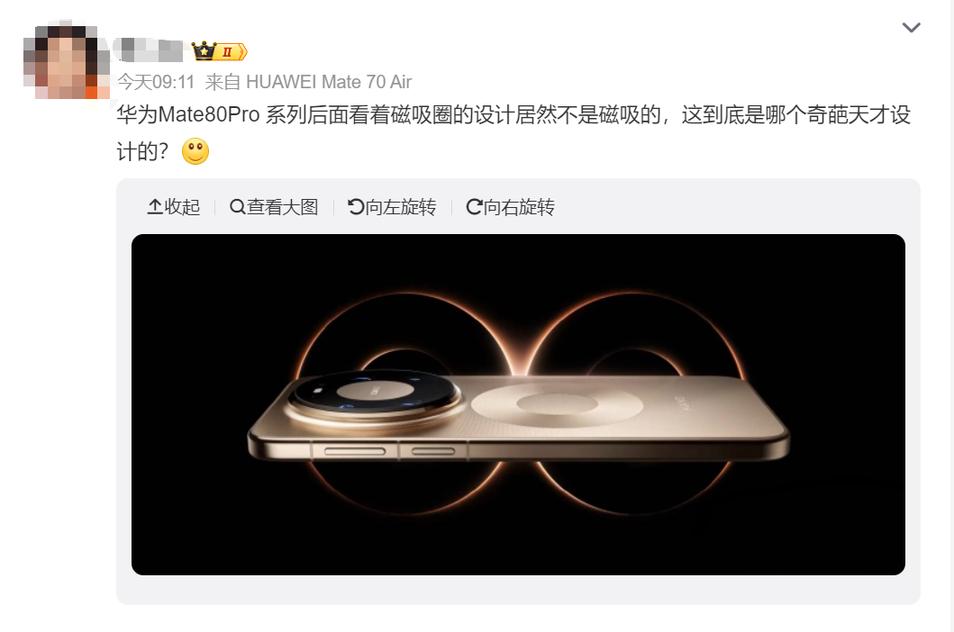 对此,部分网友表示失望,认为“磁吸圈的设计居然不是磁吸的,真是不可思议”,也有人觉得虽然舍弃磁吸功能,但背部设计仍具辨识度,整体还是可以接受的。
