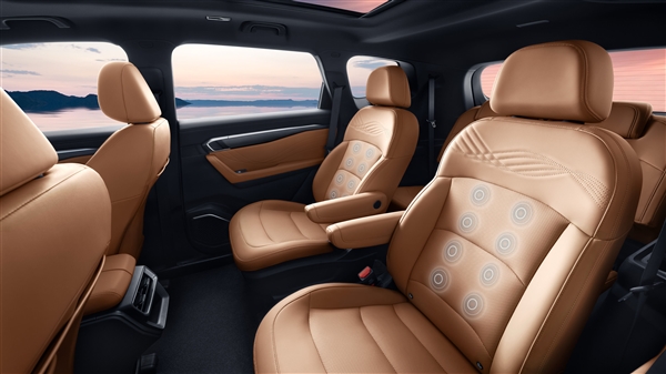 新款豪越L提供了5座和6座版本,其中6座版本配备了独立的第二排座椅,支持前后滑动和靠背调节,并且配备独立扶手,部分车型还提供通风、加热、按摩等功能,极大提升了后排乘客的舒适性。此外,除入门版外,其他版本还可以选装7座布局,第三排座椅支持纯平放倒,折叠后最大后备厢容积可达到2050升,实用性非常强。