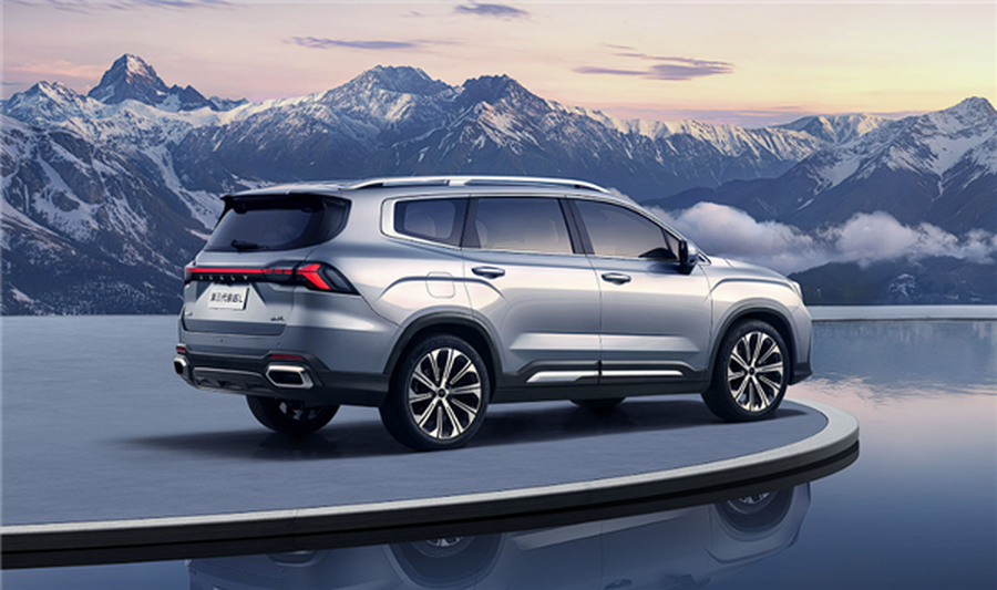 在车身尺寸上,新款豪越L长宽高分别为4865/1910/1770mm,轴距达到2825mm,车身体量相当庞大,高配车型还搭配了全新设计的20英寸多条辐轮圈(其他版本为19英寸),极大增强了车辆的气势。车尾方面,豪越L进行了一些处理,配备了小尺寸的车顶扰流板以及内嵌高位刹车灯组,尾灯采用贯穿式设计,并在两侧尾灯末端进行了分叉处理,点亮后具有很高的辨识度。