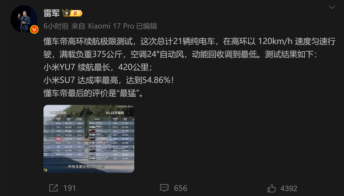 尽管如此,雷军还是表示,小米会继续向特斯拉学习,优化能耗表现。而他对小米汽车续航表现的肯定,也证明了在自主品牌电动车不断追赶的路上,小米汽车已经取得了不小的进步。