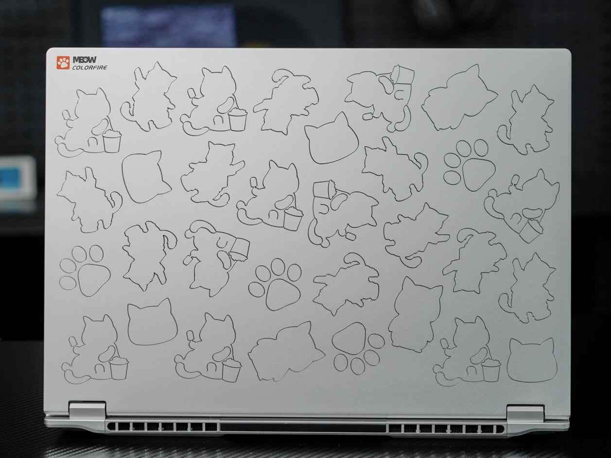 在体验过COLORFIRE MEOW喵Book14 Pro之后,最令人倾心的便是它将“萌宠美学”贯彻到底的高颜值。A面璀璨的钻石切面雕花与灵动猫影巧妙融合,搭配1.49kg的轻量化全金属机身,成功将冰冷科技产品转变为彰显个性的时尚单品,在众多同质化笔记本中脱颖而出。