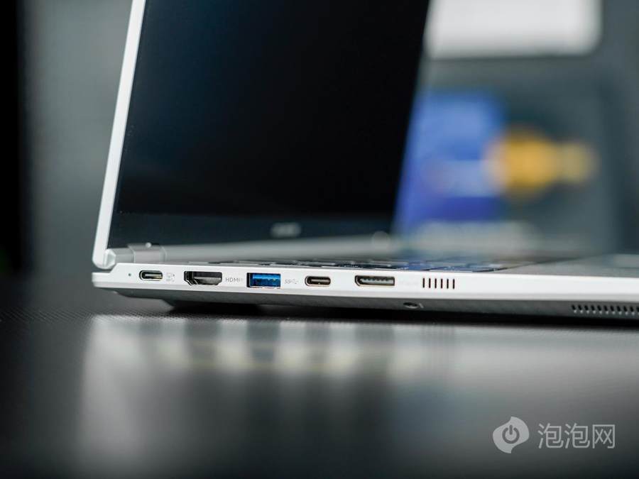 在机身接口方面,喵Book14 Pro的配置堪称豪华。左侧一个全功能USB-C 3.2 Gen2接口、一个HDMI 2.1视频输出接口、一个USB-A 3.2 Gen1接口、一个支持高速数据传输和视频输出的全功能USB4接口,以及一个备受瞩目的原生Oculink接口。Oculink接口的配备提供了外接顶级桌面显卡的“战未来”能力,全功能USB4接口则确保了全功能的高速传输。