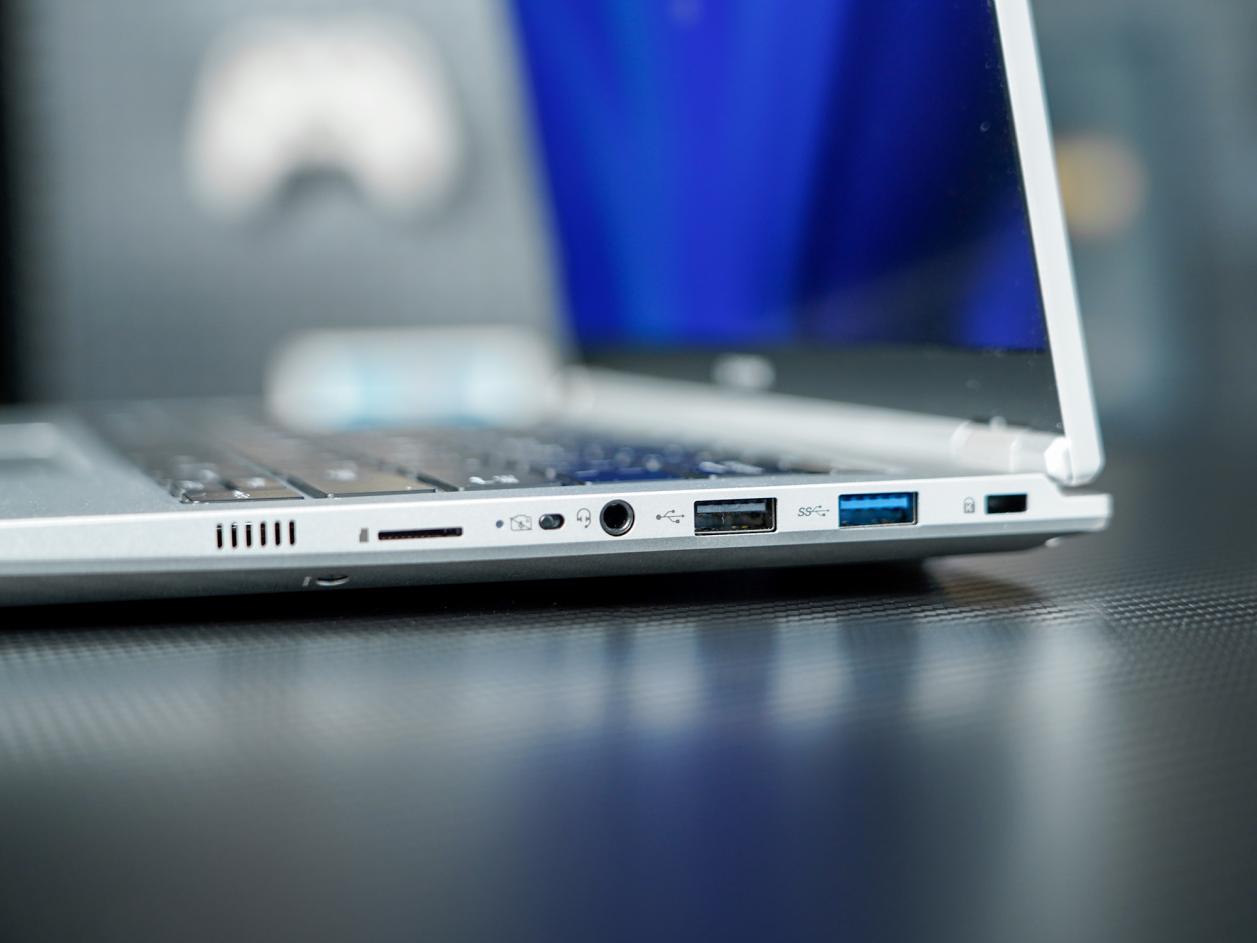 机身右侧配备了一个安全锁孔、一个USB-A 3.2 Gen1接口、一个USB 2.0接口、一个3.5mm音频复合接口以及一个MicroSD读卡器,方便摄影师等用户快速导入资料。机身右侧还设置了一个摄像头物理电控开关,只需轻轻一拨即可从硬件层面切断摄像头电源,为用户隐私安全提供了一道坚实的物理屏障。