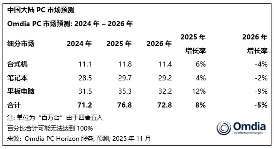 国补减弱增长放缓,中国PC市场2025年第三季度出货增2%