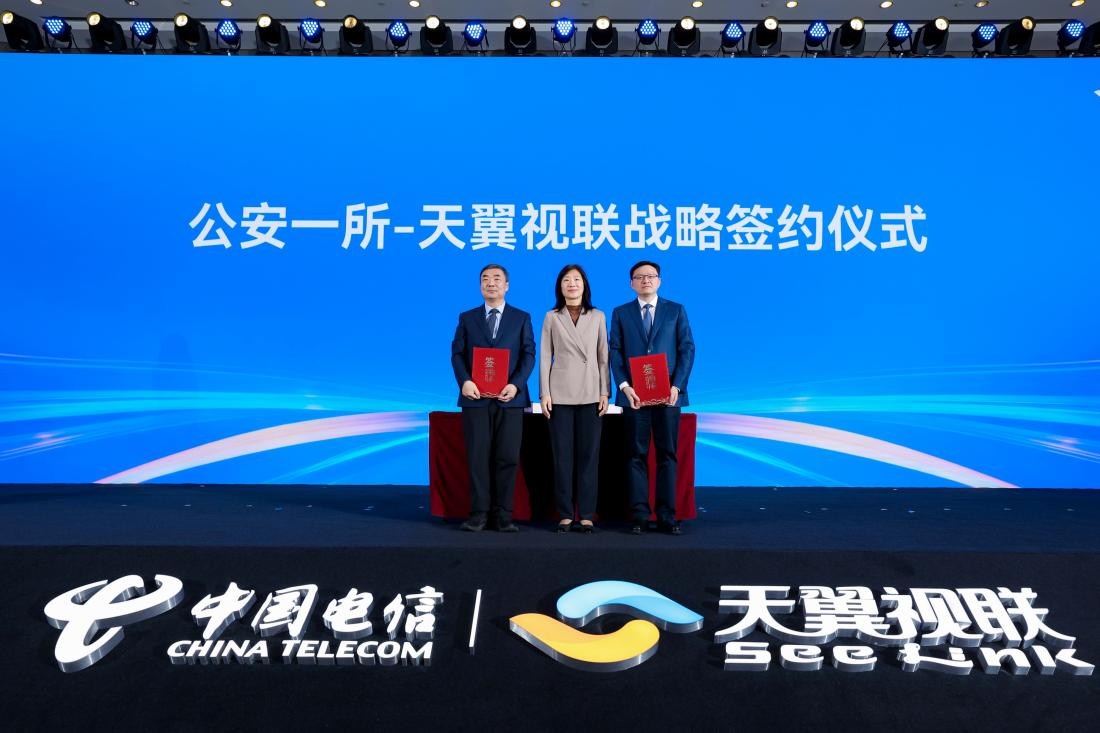 论坛上,公安部第—研究所与天翼视联公司进行战略签约,双方将聚焦视频安全领域持续创新,共同构筑坚实可靠的视频安全屏障。