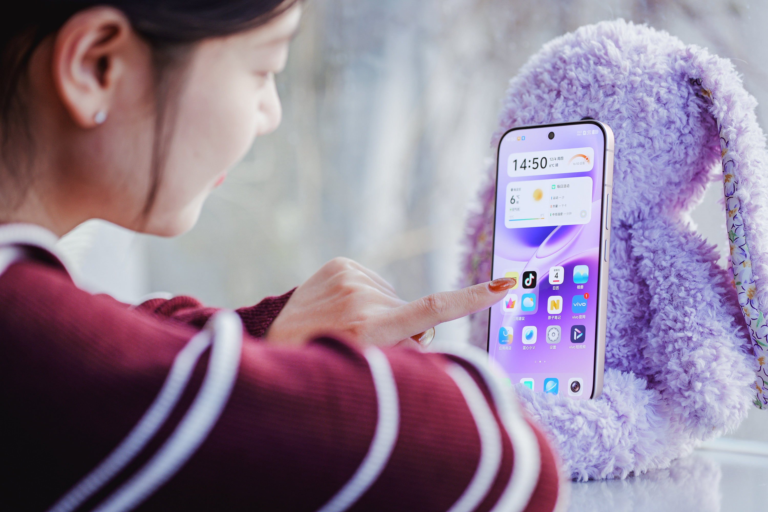 vivo S50这次不仅只有7.49mm的纤薄机身,并且重量也仅为196g轻盈,配合超大圆润R角,单手握持与操作都非常舒适;配合6.59英寸超窄黑边直屏,兼顾视觉沉浸感与使用舒适度。其中,灵感紫配色以浪漫治愈的色彩诠释心动美学,机身采用纱缎光刻工艺,背板触感丝滑温润,不易粘指纹,搭配航空级铝金属中框,经精密工艺打造,质感高级且握持舒适,不输高端旗舰。