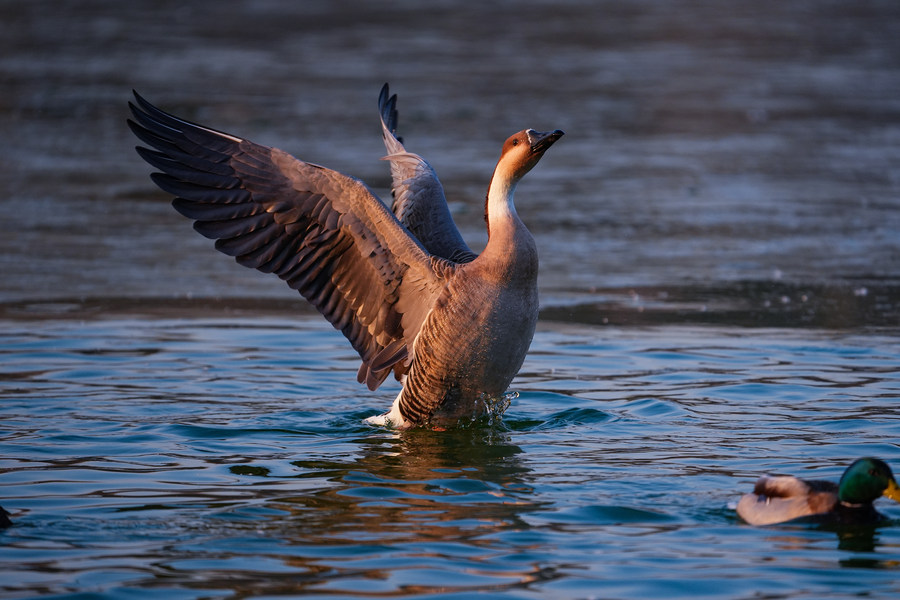 比如上面这组拍摄鸿雁在水面煽动翅膀的画面时,多次因反应不及错过“舞动”的瞬间,而开启预拍摄后,即使快门稍慢一步,也能从缓存中找到最完美的姿态与环境相融合的画面,堪称 “抓拍神器”。