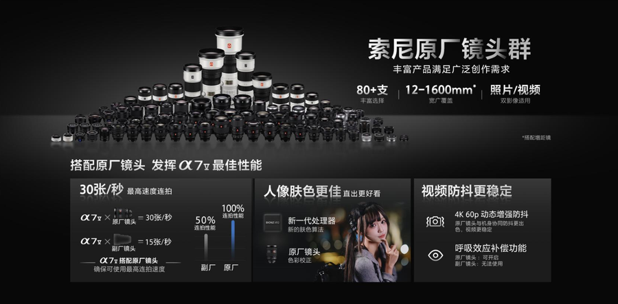 最后还值得一提的是,索尼A7M5的镜头生态也是非常大的一个优势。目前索尼E卡口已拥有80余支原厂镜头,无论是拍摄静态照片还是动态视频,搭配原厂镜头能更好地发挥出索尼A7M5全画幅微单相机的最佳画质与性能表现。
