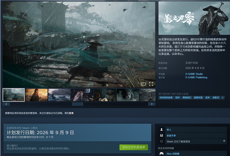 在今日的TGA颁奖典礼上,灵游坊旗舰级作品《影之刃零》官宣2026年9月9日发售,同步开放Steam、PlayStation、Epic三大平台愿望单与预购,瞬间点燃全球玩家热情。这款被玩家亲切称为 “村里的第二个大学生” 的暗黑武侠大作,能否接过《黑神话:悟空》的接力棒,成为下一个现象级国产3A?