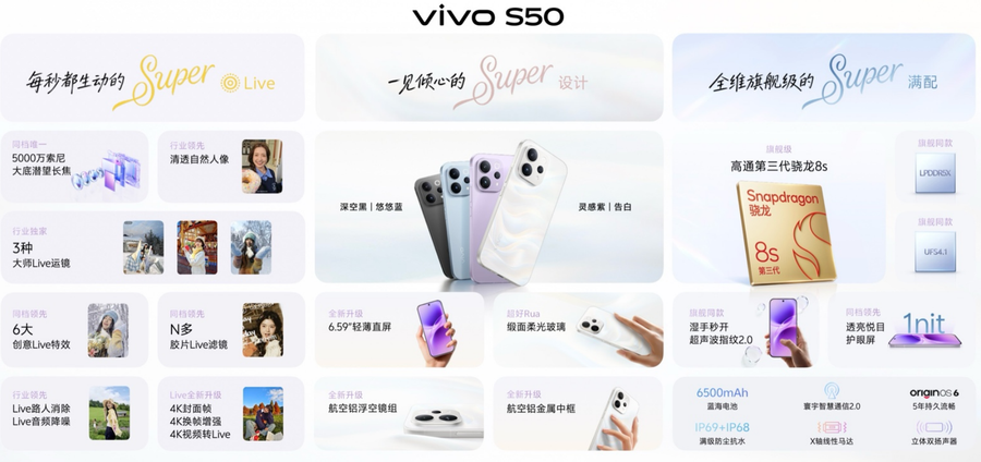 此外,vivo S50还配备Live路人消除、Live调音师、AI定制美颜等智能后期功能,真正打通从拍摄到分享的“最后一公里”,让人像更清透、自然、真实。