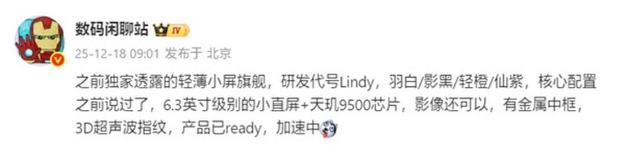 性能核心堪称本次爆料的最大亮点——荣耀Magic8 Mini将搭载天玑9500处理器,这也是荣耀首次在高端产品线采用联发科芯片,备受行业关注。这款芯片采用全大核CPU架构,由1个主频4.21GHz的C1-Ultra超大核、3个C1-Premium超大核以及4个C1-Pro大核组成,还集成了矩阵运算指令集SME2,硬件基础扎实。