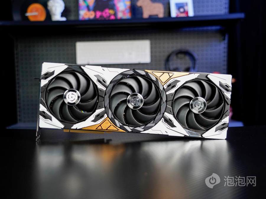 供电接口支持最新12V-2x6(16pin)标准并兼容12VHPWR,旁边设有双BIOS切换按钮,可一键切换静音与强效模式。散热系统升级为冰芯2.0技术,配备大面积真空VC均热板与八根直径8mm的冰脉3.0复合镀镍热管,保障高效散热能力。