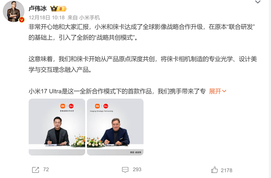 据了解,小米与徕卡相机公司的全球影像战略合作正在升级,双方在“联合研发”的基础上引入了全新的“战略共创模式”。这一模式旨在促进更紧密和多层次的合作,以突破移动影像在传统思维和应用场景上的限制。