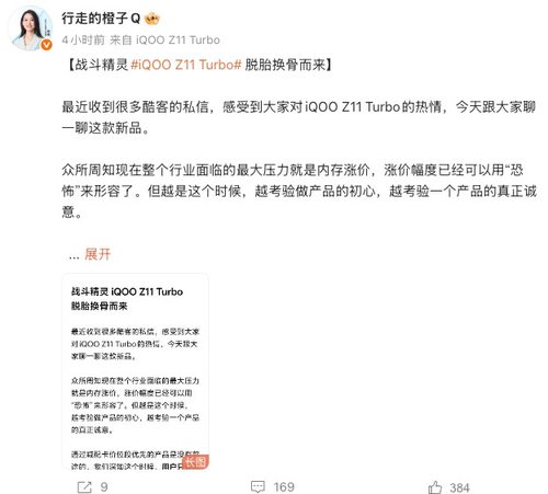 iQOO产品经理邢程正式预热Z11 Turbo系列,直言这款新机将实现“脱胎换骨”的升级。面对当前行业内“恐怖”幅度的内存涨价压力,邢程强调,越是这种时刻越考验产品初心与诚意,靠减配卡价位段的产品没有前途,只有真正满足多场景需求的高价值产品,才配得上上涨的价格。