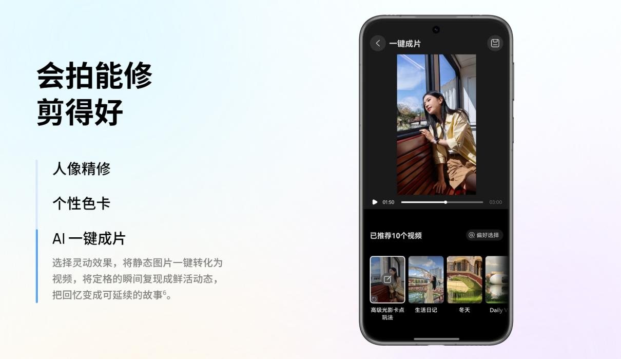 其中,“小艺一句话修图”,堪称影像后期的一次革命。面对复杂的调色、裁剪、滤镜叠加等操作,用户只需对小艺说出“把天空调蓝一点”“人物提亮、背景虚化”,系统便能自动完成修图。不满意?还能持续对话、反复调整,直到满意为止。这不仅大幅降低创作门槛,更让每个人都能轻松产出“大片级”作品——动口不动手,影像创作从未如此自由。
