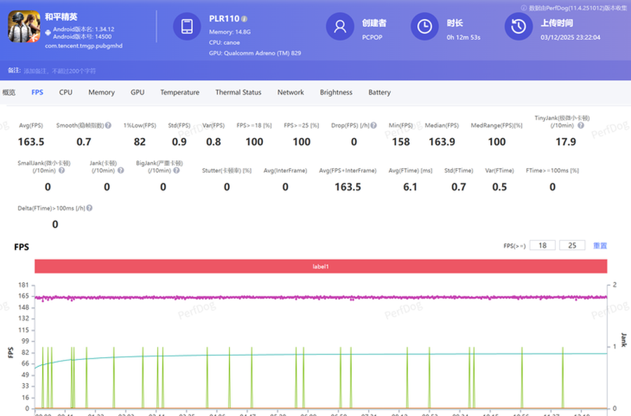 《和平精英》在一加Ace 6T上则支持165FPS模式,游戏时平均帧率可以达到163.5FPS,游戏过程十分的流畅,在开镜、射击等操作时,响应速度也非常快,游戏体验十分优秀。