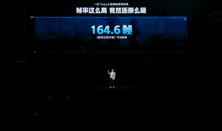 基于强大的软硬件调教能力与广泛的生态合作,一加 Turbo 6 已支持《使命召唤手游》、《火影忍者》等游戏的原生 165 帧模式,并完成 FPS 、MOBA、格斗、赛车等六大类主流手游原生 165 帧适配;其中,《使命召唤手游》游戏上,一加 Turbo 6 实现了165 超高帧满帧,平均帧率高达 164.6 帧。