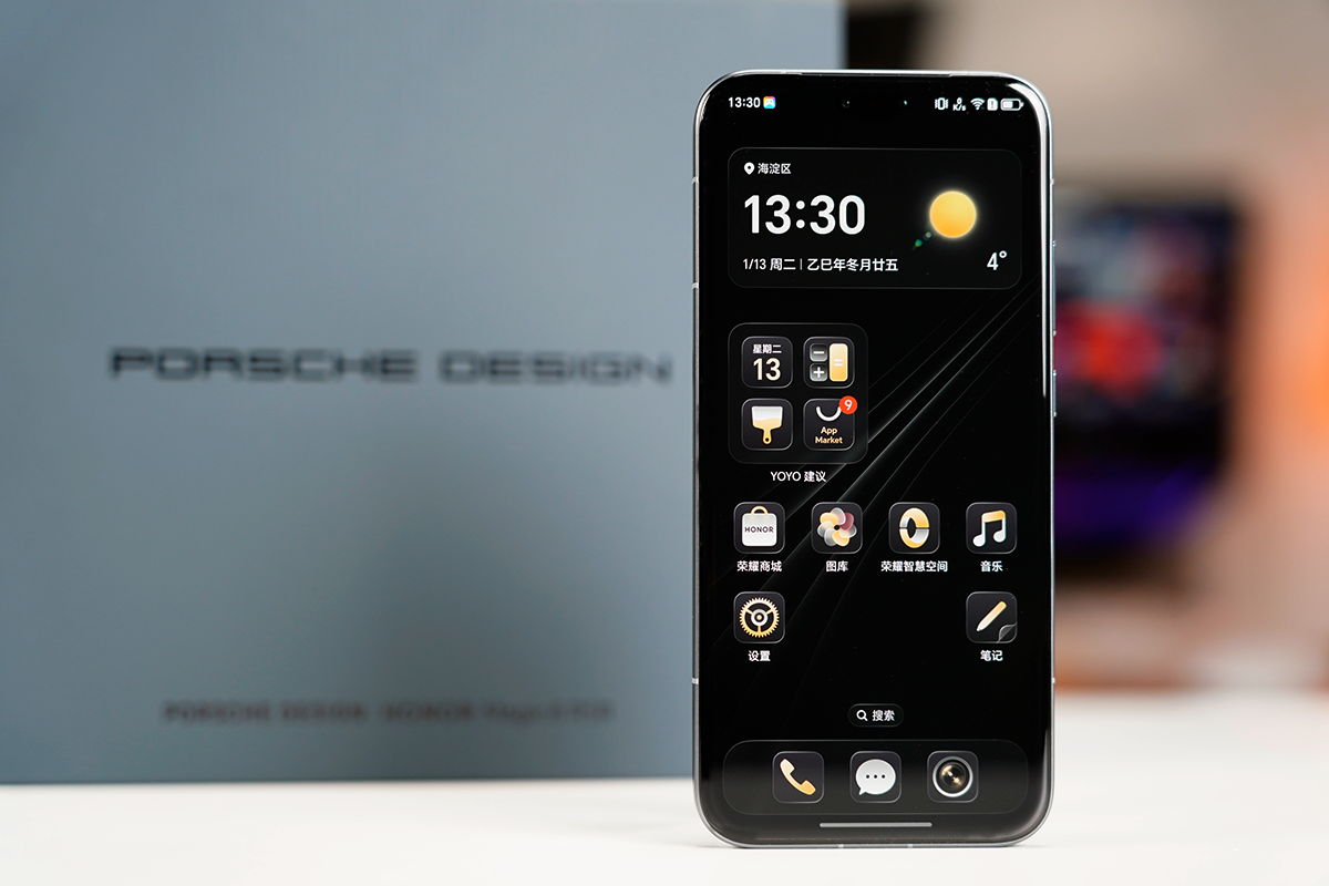 荣耀Magic8 RSR保时捷设计配备了6.71英寸等深四微曲屏,有着直屏的观感与曲面屏的手感,机身宽度收窄至75mm,厚度8.45mm、重量239g,修长的机身比例让单手握持压力显著降低。