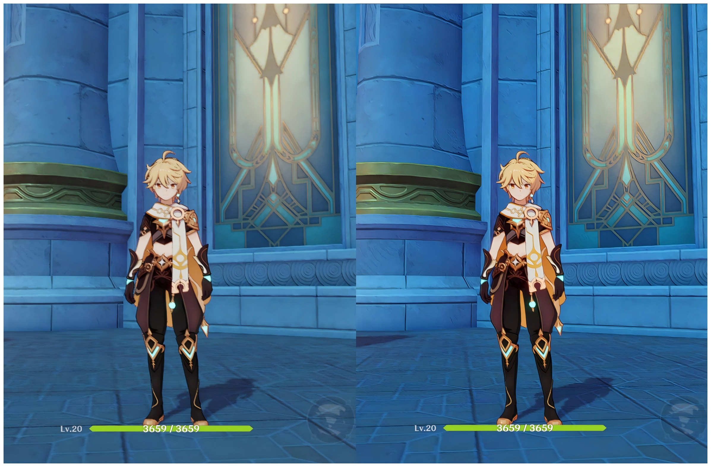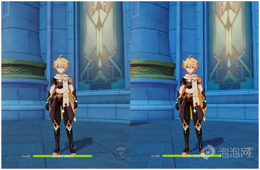 通过画面对比我们可以看到,在开启画质增强之后,游戏整体的色彩会变得更加鲜明,将图片放大还可以看到人物以及墙壁纹理等细节也都得到了清晰度的提升。