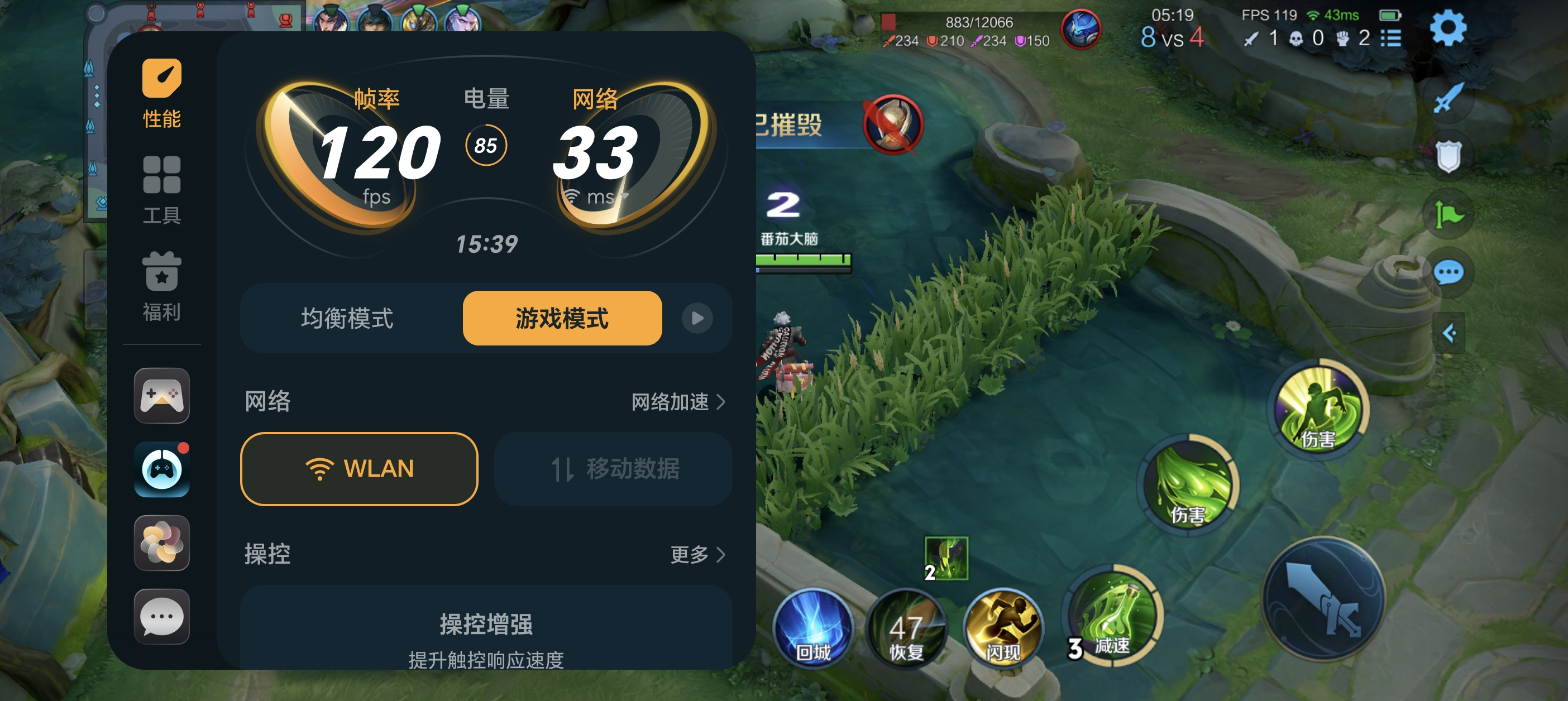 《王者荣耀》选择极高画质+超高分辨率,同样具备流畅稳定的游戏表现,团战不卡顿,帧率可以维持在120FPS的水平,长时间游戏也依然有着出色的表现。