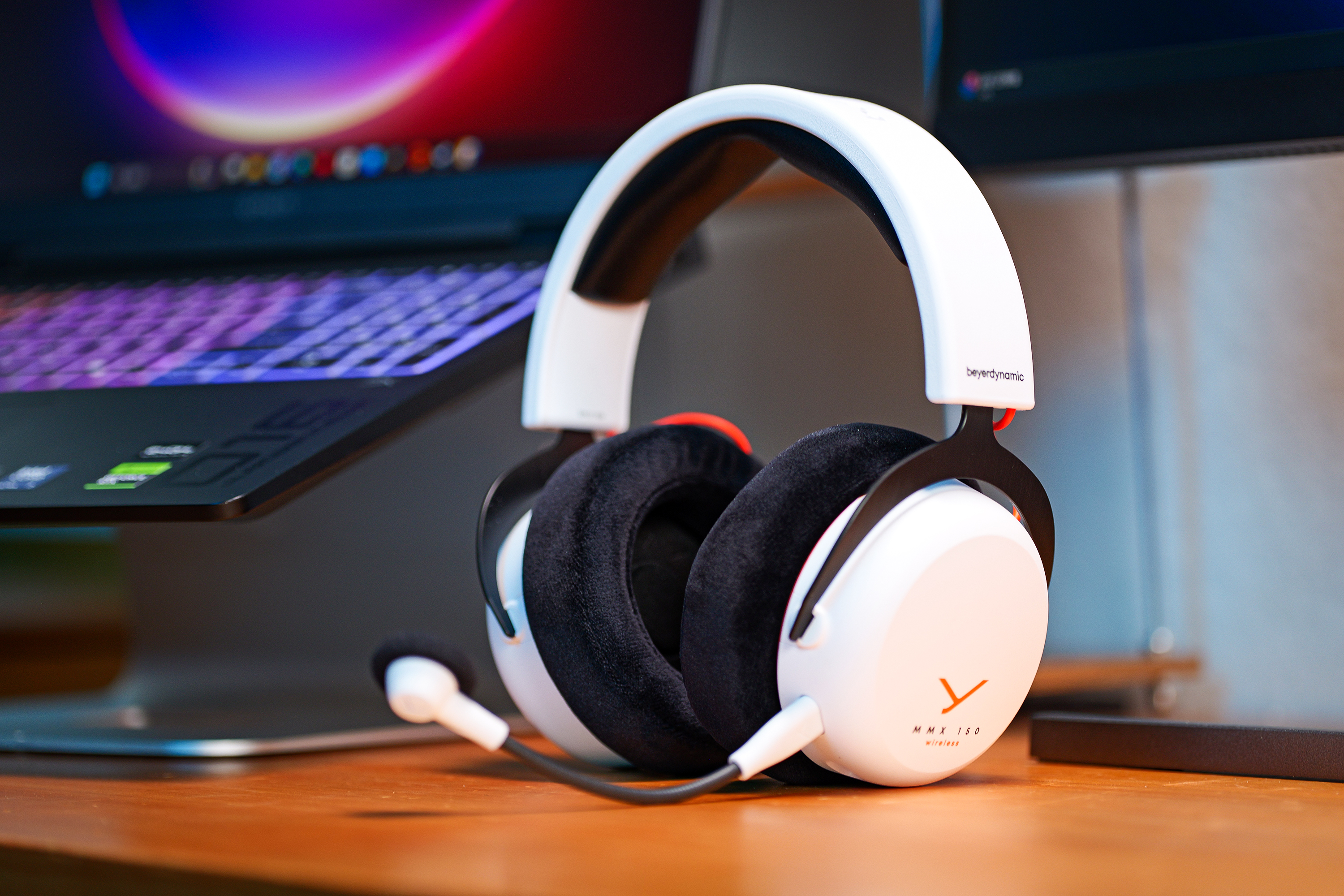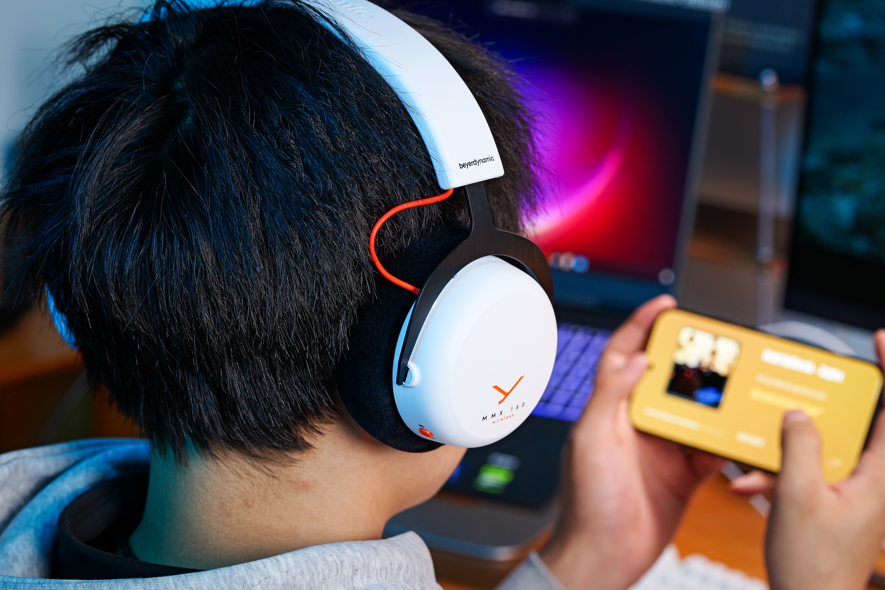 拿到拜雅MMX 150无线的初印象就是“克制”,没有游戏耳机常见的浮夸RGB灯带和棱角设计,白色机身搭配橙色点缀,更像是一款日常通勤耳机,这一点很对我这种不喜欢张扬的用户胃口。