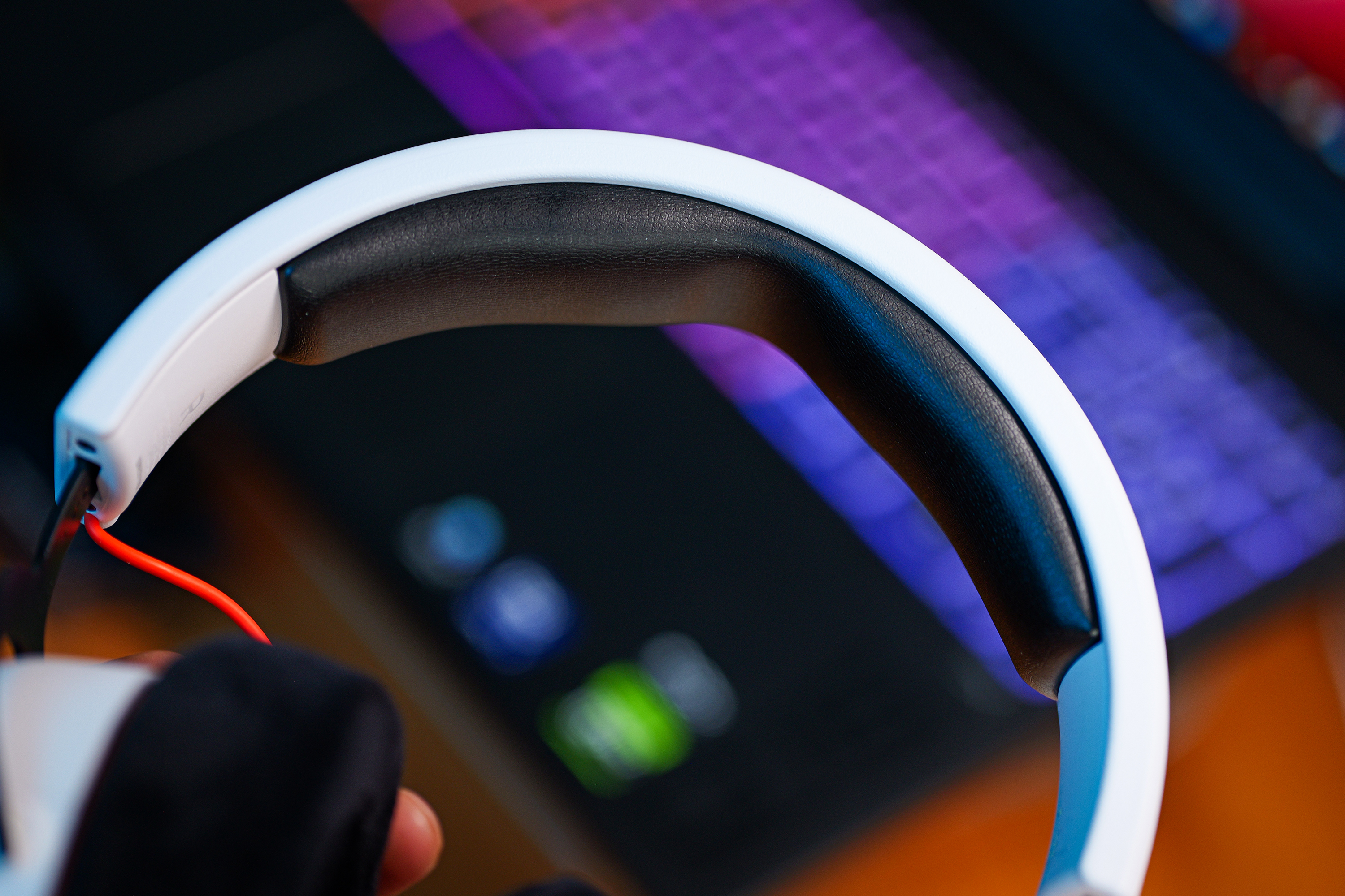 拜雅标志性的“囟门凹陷”头梁设计很加分,头梁内侧是皮质包裹的记忆海绵,柔软厚实,能精准避开头顶受力点。我这种头围偏大的人,戴两三个小时也不会觉得头顶发紧,重量分布很均匀。