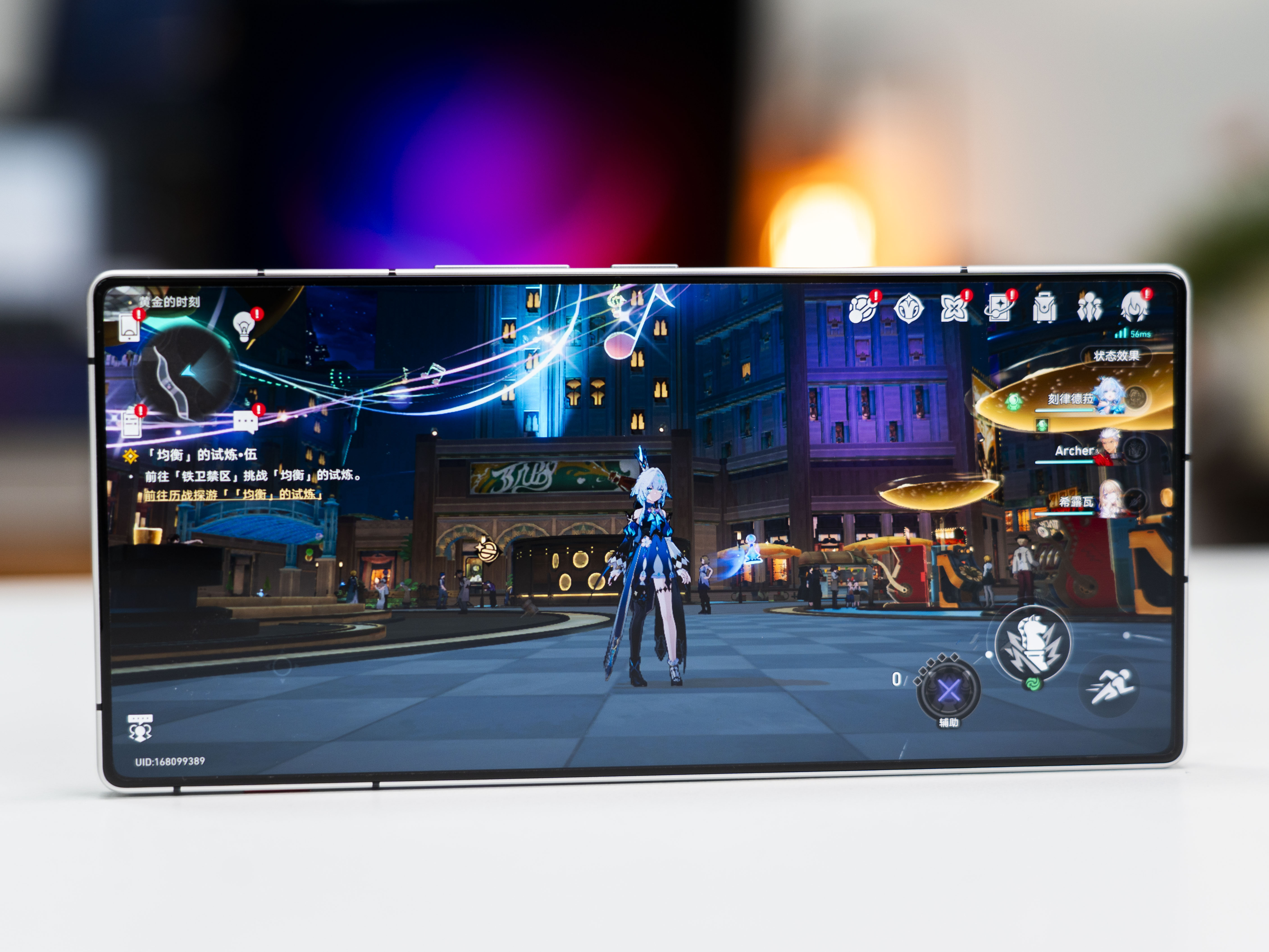 这块屏幕的显示素质也十分出色,有着1.5K分辨率,支持144Hz高刷新率配合全局960Hz/瞬时2000Hz触控采样率,操作丝滑流畅,在游戏中更具优势。更值得一提的是,其对主流手游的高帧适配极为全面,《王者荣耀》《英雄联盟手游》《和平精英》等多款游戏原生支持 144Hz高帧,《三角洲行动》《无畏契约手游》等也即将开通适配。同时,屏幕通过 SGS低蓝光护眼认证、国 家 级AMOLED护眼与可靠性认证,2592HzPWM+DC调光技术有效降低眼部疲劳,1800nit峰值亮度确保强光下清晰可见,护眼与观感做到两全其美。