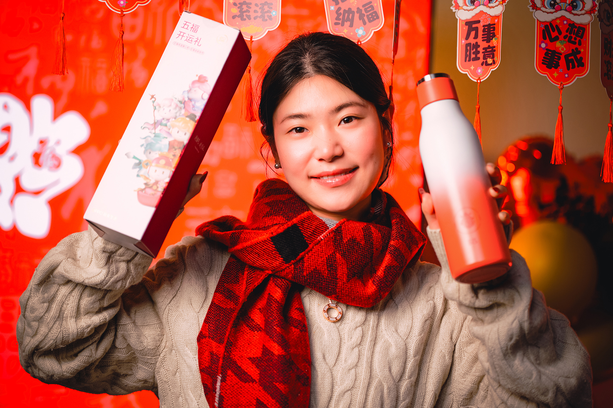 我这次欧气爆棚抽中了「福」字款保温杯,正红色杯身超有新年氛围,拿在手里质感绝了。