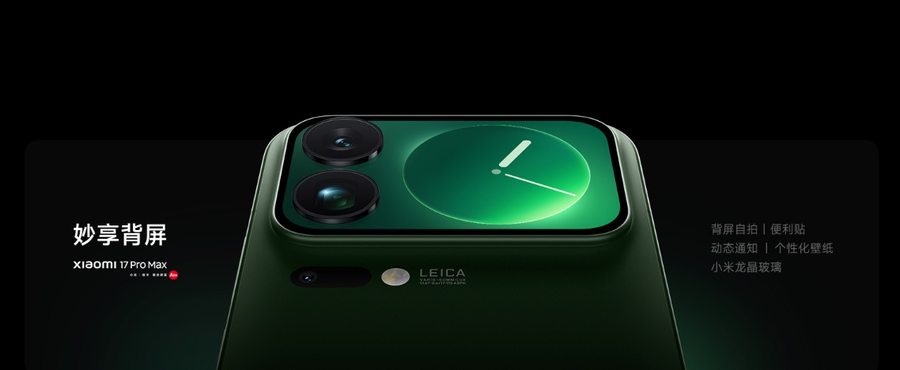 交互体验方面,小米已明确表态,小米18系列将继续延续背屏设计,且经过持续的技术研发与功能优化,新机的背屏体验将更加成熟实用。不同于以往后屏“华而不实”的尴尬,小米18系列的背屏将借助AI技术实现全面焕新,从被动显示的“小窗口”升级为主动服务的“智能伙伴”,支持自拍取景、打车显车牌、跨设备控家电、付款免翻屏等高频实用功能,彻底打破用户对后屏“智商税”的偏见。其中,标准版配备1.8英寸圆形背屏,Pro和Pro Max版则升级为2.66英寸方形背屏,与机身无缝嵌合,视觉一体性与握持手感大幅提升。