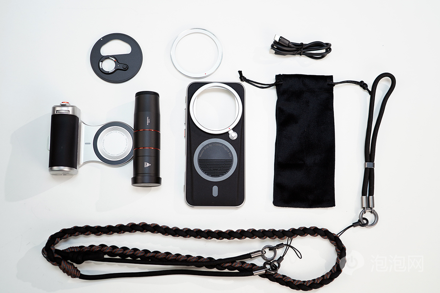 专业摄影套装拥有非常丰富的配件,包括摄影背带、RSR影像保护壳、金属装饰环、滤镜转接环、增距镜转接环、摄影手柄、增距镜、数据线、收纳袋。
