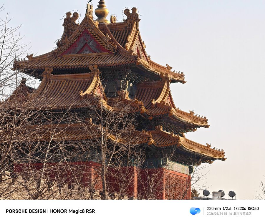 荣耀Magic8 RSR保时捷设计的增距镜可以直接拍摄200mm焦段的照片。