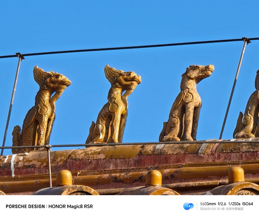 换一个场景,使用增距镜拍摄的400mm焦段可以将屋顶脊兽全部清晰的记录下来。