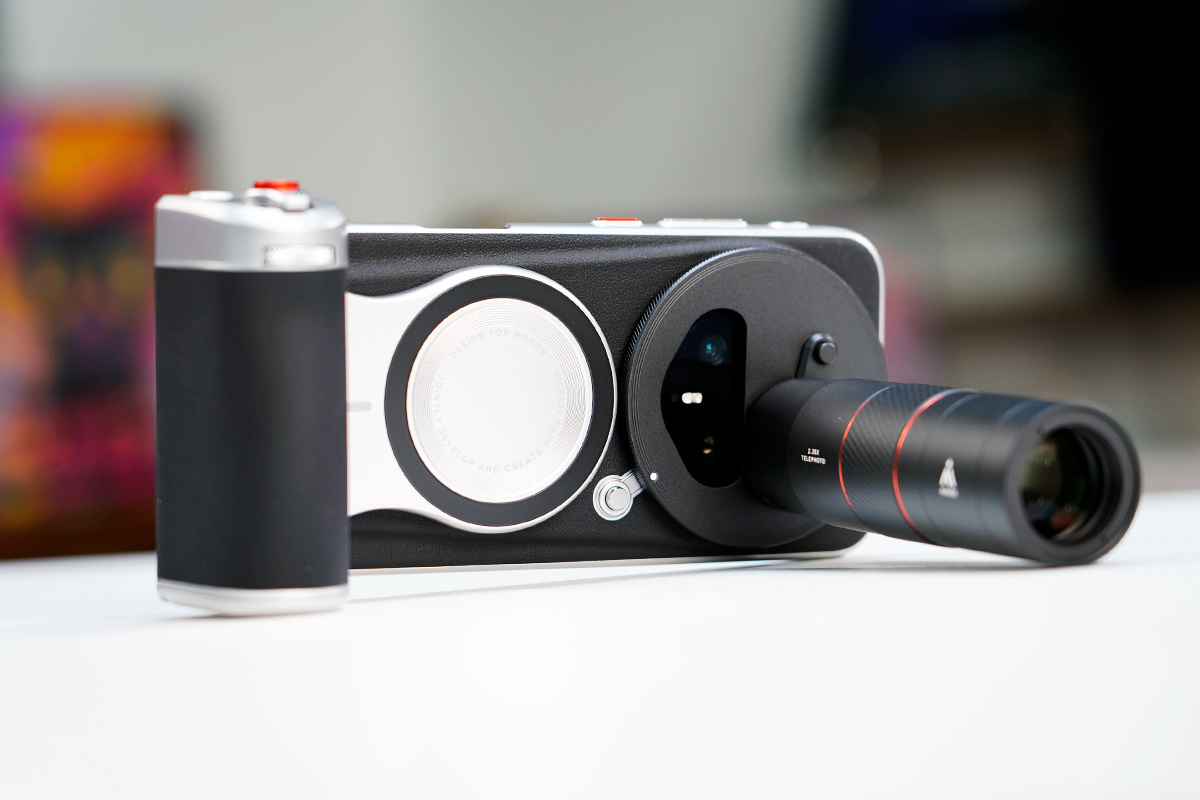 荣耀Magic 8 RSR保时捷设计安装增距镜与摄影手柄后的效果