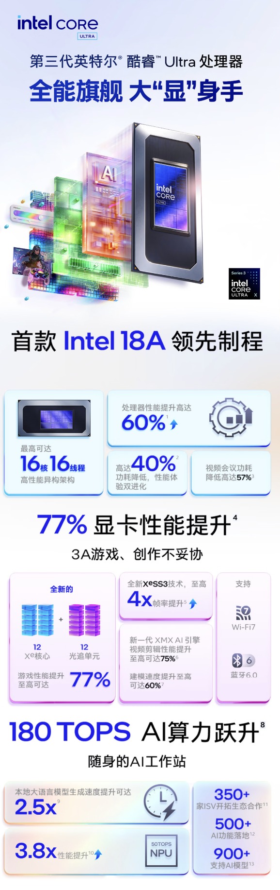 作为第三代英特尔酷睿 Ultra 系列处理器,酷睿 Ultra X7 358H 采用英特尔 18A 领先制程打造,拥有 16 核 16 线程的高性能异构架构,官方数据显示,该处理器性能提升可达 60%,功耗降低最高 40%,视频会议场景功耗降低 57%。其核显性能迎来大幅升级,拥有 12 个 Xe 核心与 12 个光追单元,游戏性能提升最高 77%,配合全新 Xess3 技术可实现 4 倍帧率提升,能流畅应对 3A 游戏与创意创作需求。同时该处理器集成新一代 XMX AI 引擎,AI 算力高达 180 TOPS,本地大语言模型生成速度提升 2.5 倍,可支持超过 900 种 AI 模型,让笔记本化身随身 AI 工作站。为保障高性能持续输出,惠普星 Book Pro 16 2026 款采用双风扇双热管散热方案,搭配 32GB LPDDR5x 高速内存与 1TB PCIe SSD,可满足多任务处理与大型文件存储需求。
