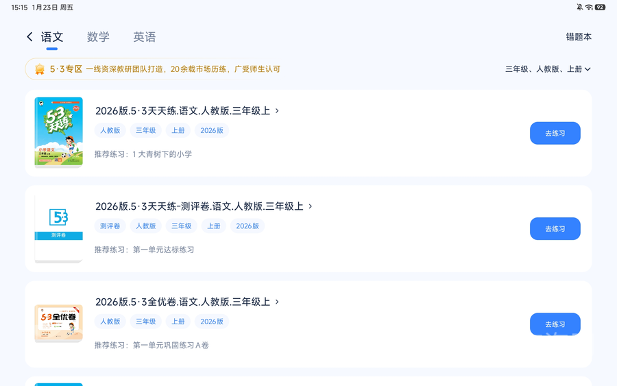 这是REDMI Pad 2 Pro最核心的优势,作为千元价位的平板,它可以实现小学至大学的全学段AI助学,内置的小米教育中心堪称“全能教辅库”,小学阶段有《5.3天天练》同步练习,初中、高中对应《5.3初中同步》《5.3高中全优卷》,课前预习、课中练习、课后复盘全场景覆盖,开通教育VIP后即可享受全部教学资源。