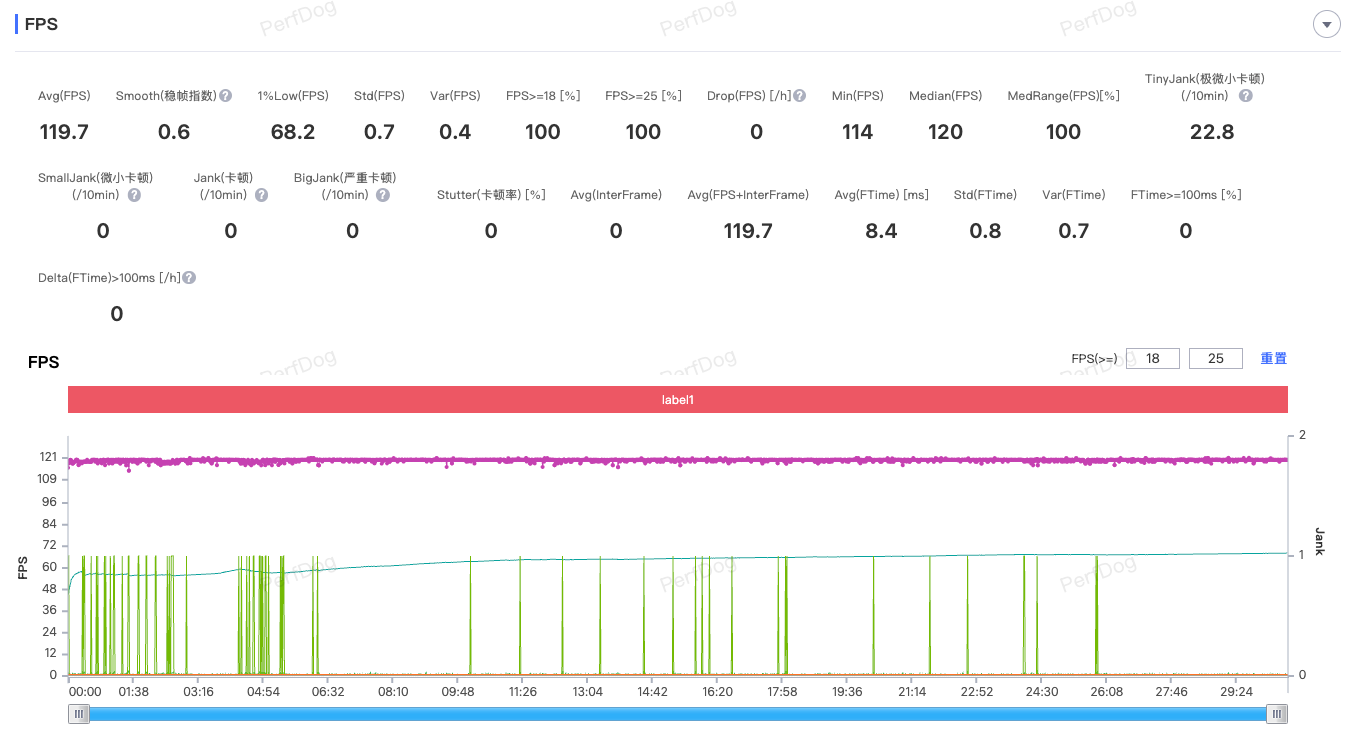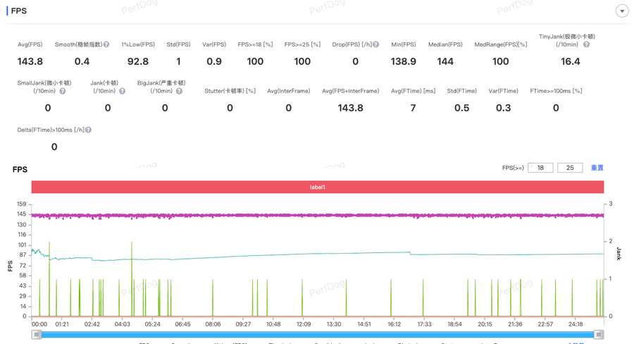 《三角洲行动》同样支持原生144FPS+极致画质,一局游戏下来平均帧率能达到143.8FPS。