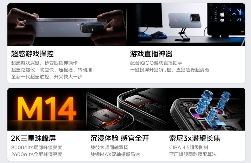 沉浸感方面同样到位,首发战锤MAX双轴振感马达,集成X轴与Z轴双向振动,体积达576mm²,可为24个游戏角色定制专属振感,就连大招振动都能区分方向;搭配战鼓大师同轴对称双扬声器,内置独立高音单元,高频与低频表现更清晰,杜比全景声加持,玩游戏时能精准听声辨位,触觉与听觉双重赋能,沉浸感直接拉满。此外,该机还支持一键开播、一键投屏,精准适配游戏主播的使用需求。