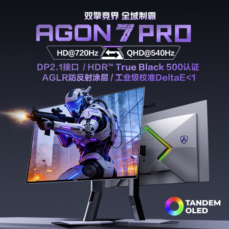AOC近日正式推出新款高端电竞显示器AGP277QKD,目前该产品已上架电商平台开售,官方定价7999元,提供3期免息优惠和3年质保服务。这款显示器搭载26.5英寸第四代WOLED面板,采用Primary RGB Tandem串联技术与四层堆叠结构,在提升屏幕寿命和稳定性的同时,实现了更高的色彩表现和峰值亮度。