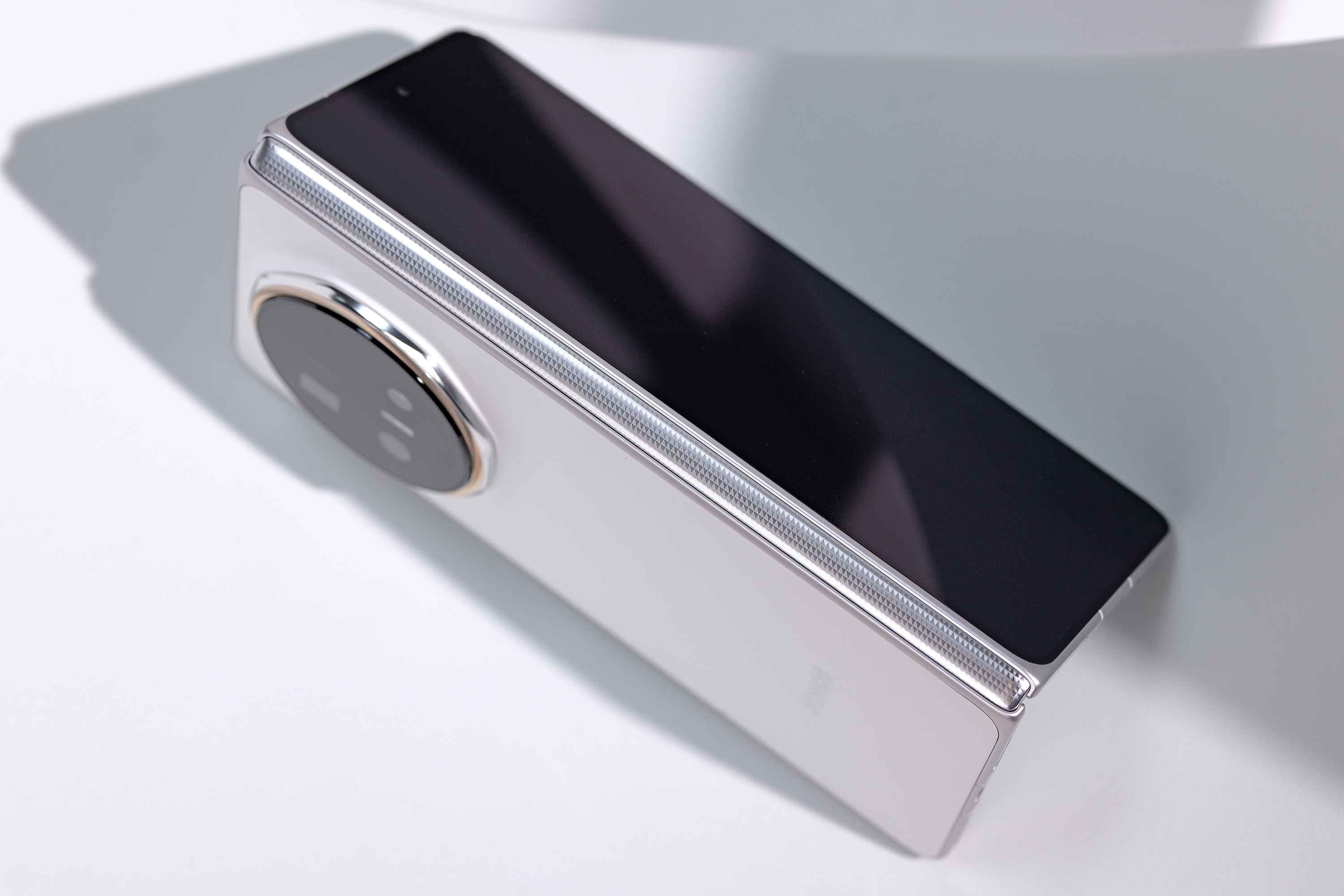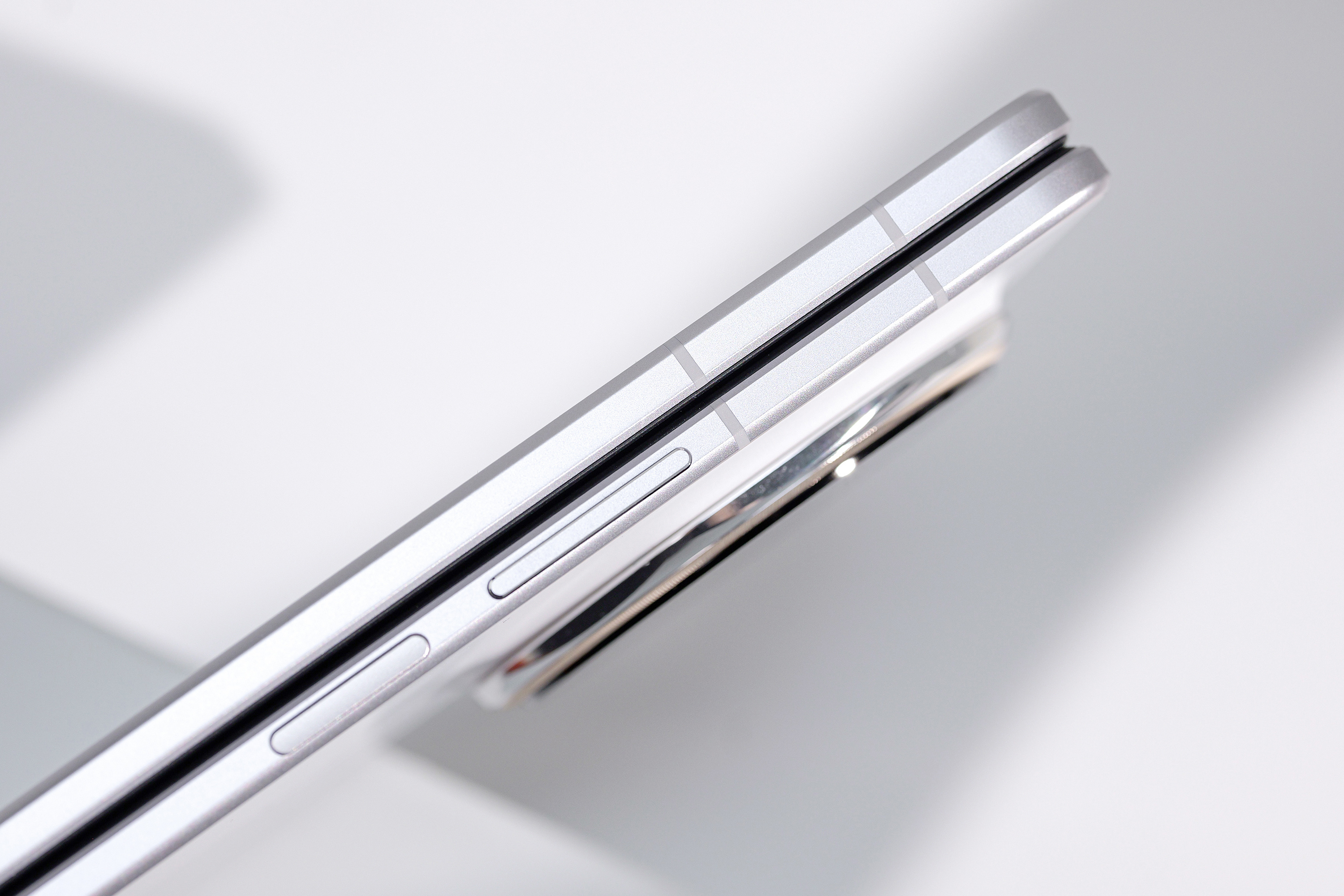 机身设计方面,这款超薄的折叠屏手机也非常精致,影像DECO部分为穹顶八边辅以细腻纹理,高级感拉满;同时,纯平面板搭配利落直角C边,线条简约大气;此外,铰链轴盖也加入立体纹理,细节质感出众。