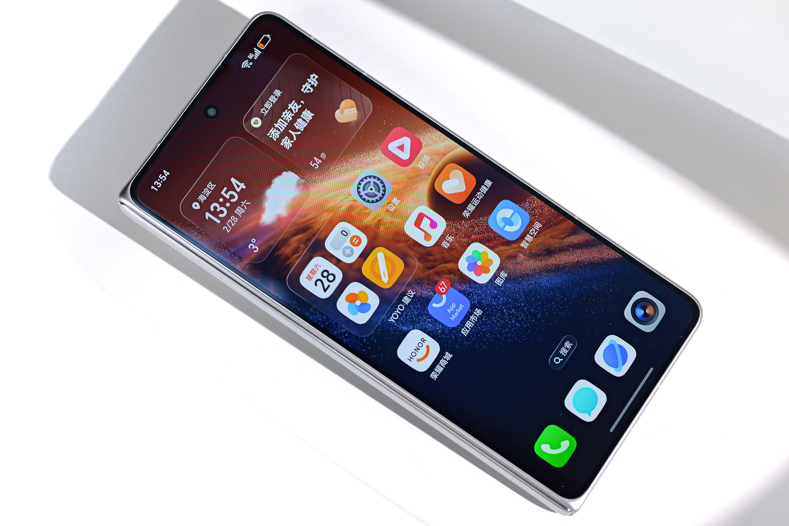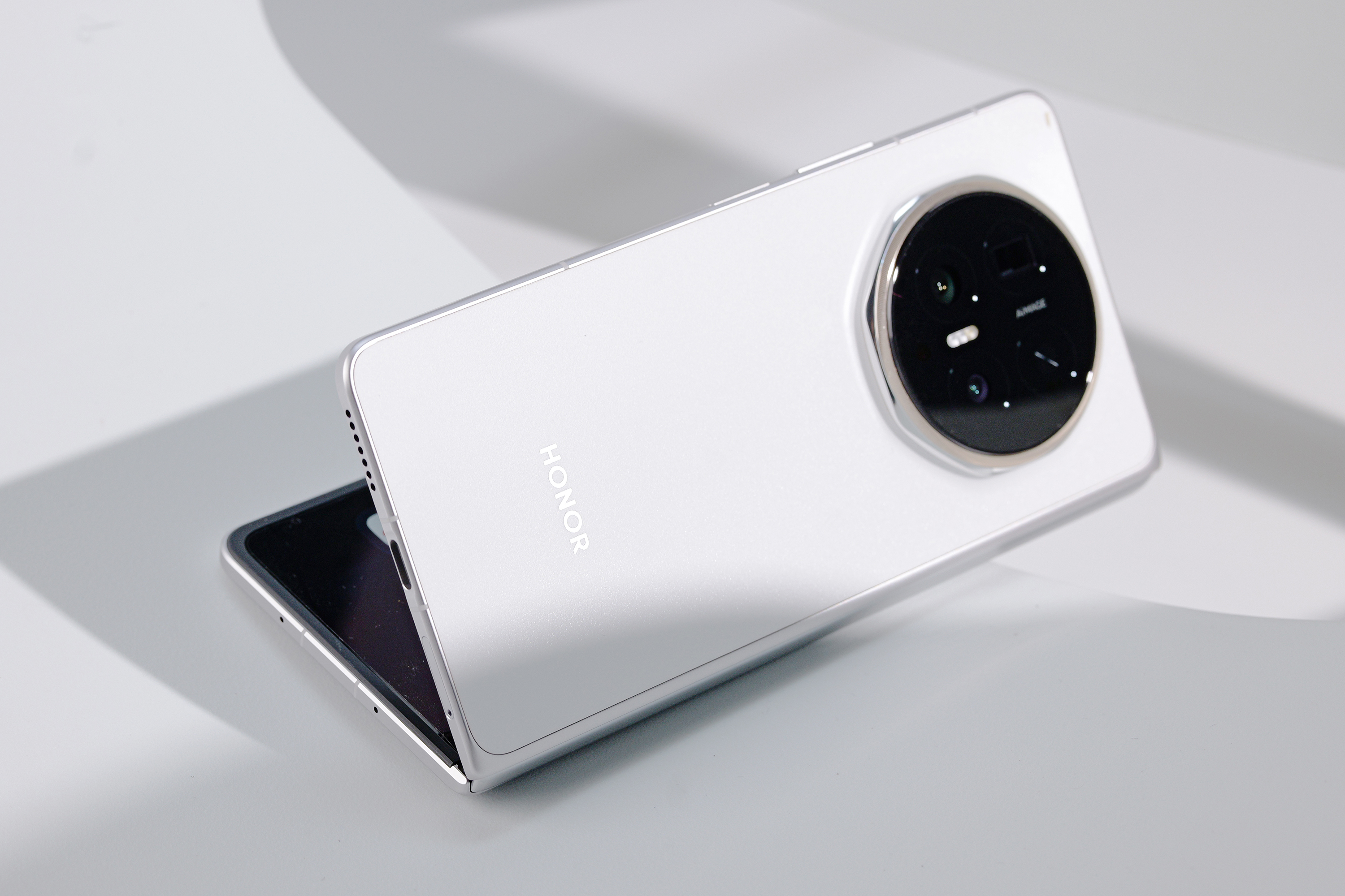 荣耀Magic V6已经正式官宣,折叠状态下厚度仅8.75mm,展开也只有4mm,是目前行业最薄的折叠屏手机。图中的雪域白配色整机仅219g,比许多直板旗舰更轻盈,单手操控轻松无压力。